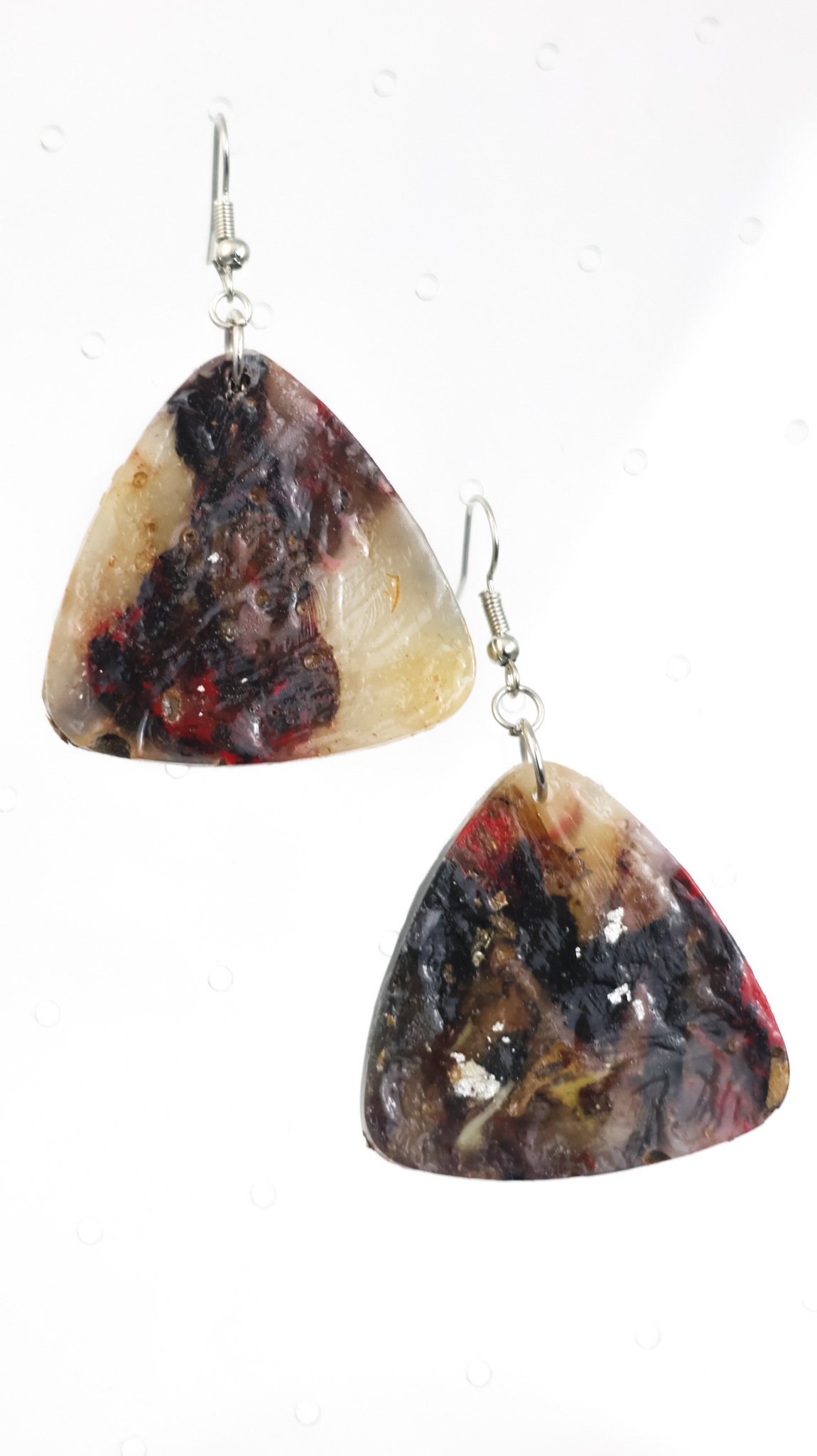 These earrings are lightweight amirite (recycled and sustainably-sourced HDPE). They are one of a kind and made from repurposed materials found in central Ohio. They are a conversation starter with their distinctive style. The material has natural dissimilarities as a result of the reformation process.