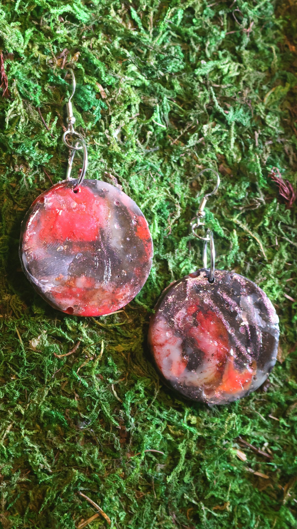 These earrings are lightweight amirite (recycled and ethically-sourced HDPE) with a light shimmer treatment. They are one of a kind and made from repurposed materials found in central Ohio. They are a conversation starter with their distinctive style. The material has natural dissimilarities as a result of the reformation process.